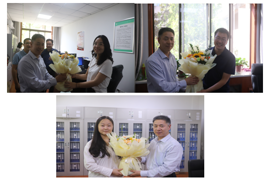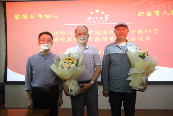 首先赵作纽、岳田利、刘晓忠分别代表学校和学院向教师代表赠送了鲜花和节日祝福。