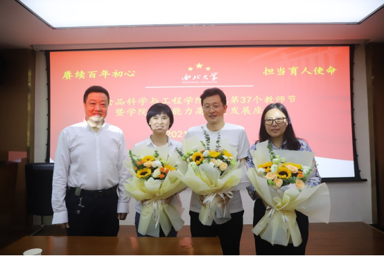 “赓续百年初心,担当育人使命”, 9月9日下午,食品科学与工程学院庆祝第37个教师节暨学院教师能力高质量发展座谈会在太白校区召开。校党委副书记赵作纽参加会议并作讲话,食品学院全体教师出席会议。