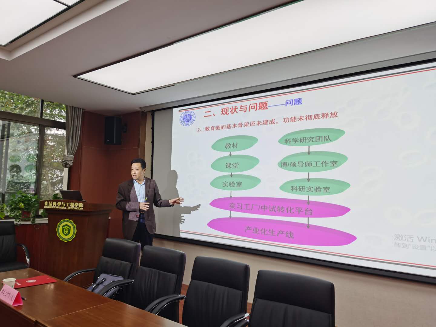 郭立宏听取汇报后指出,食品科学与工程学院建院以来,在岳田利院长的带领和指导下,实现了超常规的发展,取得了一系列成绩,并与陕西当地政府部门、社会各界、企事业单位建立了广泛的联系,规划中的目标振奋人心,按照学院发展的迫切需求学校要大力给予支持,一是化工学院南迁后,研究解决食品学院办学空间问题;二是为保证工程认证等工作顺利进行,由财务处和教务处筹措经费,支持此次工程认证基本条件建设;三是人才引进方面要看准拔尖人才、成长力强人才,优中选优,不断优化队伍结构。食品科学与工程学院成长型强,发展空间大,是学校发展的重大机遇,一定要充分利用十四五发展的机遇期,取得更加长足的进步。