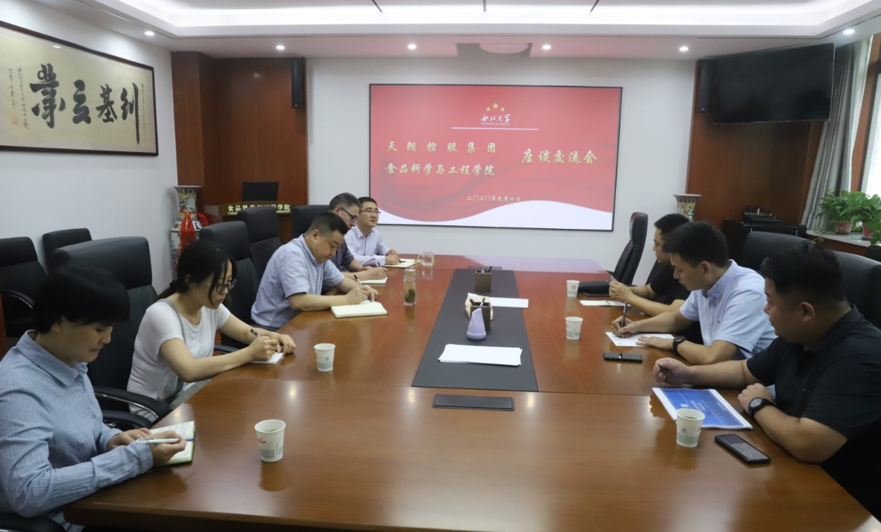 9月10日上午,天朗控股集团朱学亮、宋文漪、杜海平三位部门负责人一行来beat365在线体育官网洽谈合作事宜,岳田利院长、刘晓忠书记、骆艳娥教授、宋微副教授、王媛副教授出席了座谈会,会议由赵会武副院长主持。