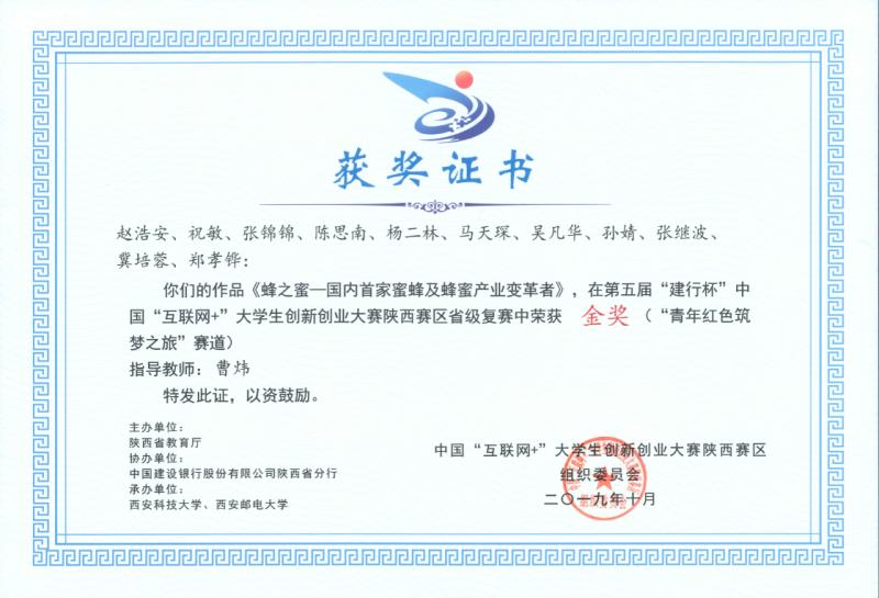 近日,第五届中国“互联网+”大学生创新创业大赛全国总决赛在浙江大学落下帷幕,陕西赛区省级复赛在西安科技大学落下帷幕。经过激烈角逐,beat365在线体育官网 “蜂之蜜”项目勇夺青年红色筑梦之旅赛道陕西省金奖。