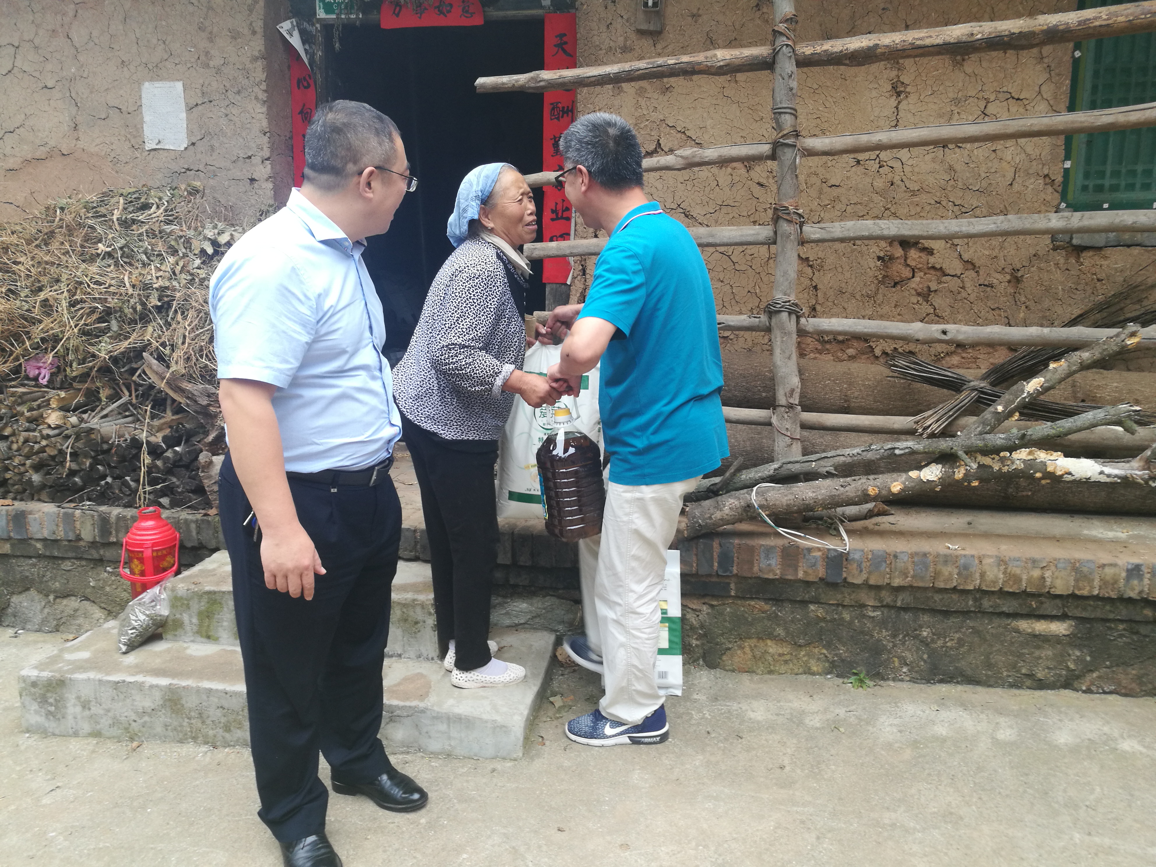 2019年8月19日,按照西北大学扶贫工作专题会议纪要(专纪字〔2019〕17 号)安排,院党支部书记刘晓忠、副院长赵会武跟随由常江副校长带队、党委常委、党校办主任吕建荣、党委常委、党委宣传部部长田明纲等领导参加的学校对接帮扶小组赴商洛市商州区黄山村开展对接帮扶贫困家庭脱贫工作。beat365在线体育官网负责对接帮扶的是黄山村三组低保贫困户郭凤娥老人,该户一家6口,子女均外出打工,老人留居农村因缺劳力而导致贫困。常江带领扶贫小组首先对老人的近况进行了了解,并向老人送慰问金,刘晓忠代表学院为老人送米面油等慰问品,老人对于学校和政府一直以来的帮助表示感谢,一再用朴实语言表示“在共产党的领导下现在的生活比以前强多了”。