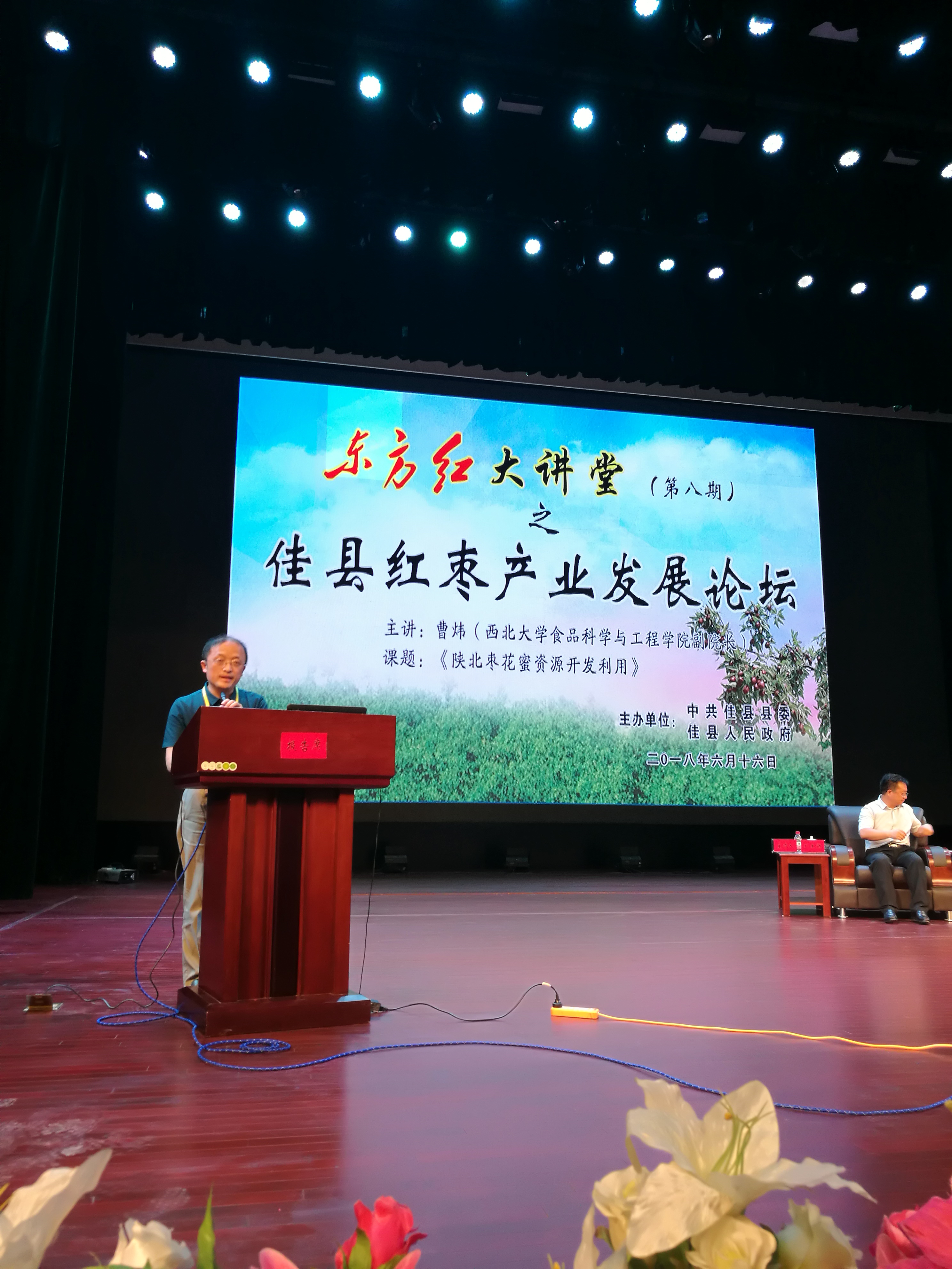 在红枣产业发展论坛环节,beat365在线体育官网副院长曹炜教授做了有关“陕北枣花蜜资源开发利用”的专题报告,从陕北蜂业现状、佳县发展蜂产业的优势、枣花蜜的生物功能和营养价值、枣花蜜的市场前景等方面分析了佳县发展养蜂产业的可行性,为其红枣产业的发展提供了一条新的发展路径。