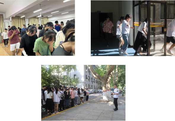 培训讲座结束后,在院楼内进行了应急逃生演练。警报拉响后,各楼层同学在实验室安全负责老师的指挥下,有序的从东西两侧楼梯低头弯腰,手扶墙,捂住口鼻,有序疏散,最后在东门指定集合点集合,各班清点人数后向负责老师汇报,此次应急逃生演练顺利完成。
