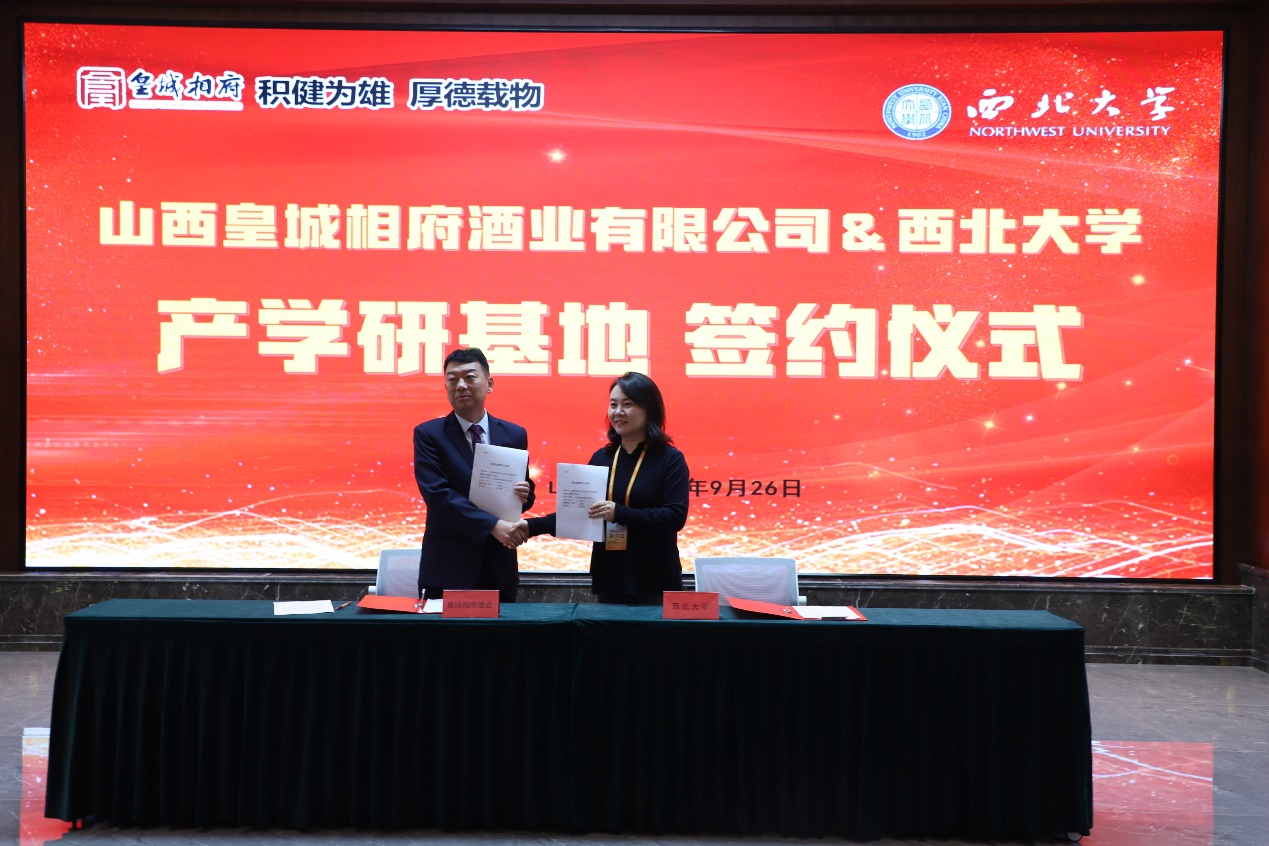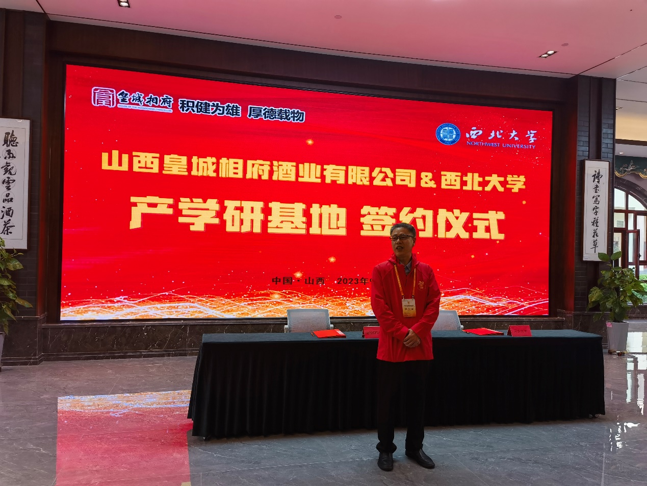 会上举行了beat365在线体育官网与山西皇城相府酒业有限公司产学研合作基地揭牌仪式,刘晓忠书记与皇城相府酒业党支部书记兼董事长郭新胜共同为山西皇城相府酒业有限公司-西北大学产学研基地合揭牌,刘晓忠在发言中表示学院将以此为契机,发挥高校优势,与公司共同做好人才培养和科技研发与转化。beat365在线体育官网程妮教授与皇城相府酒业公司签署了专利成果转化协议,将蜂产品团队2项发明专利转让给公司,为山西皇城相府酒业有限公司新产品研发提供技术支撑。