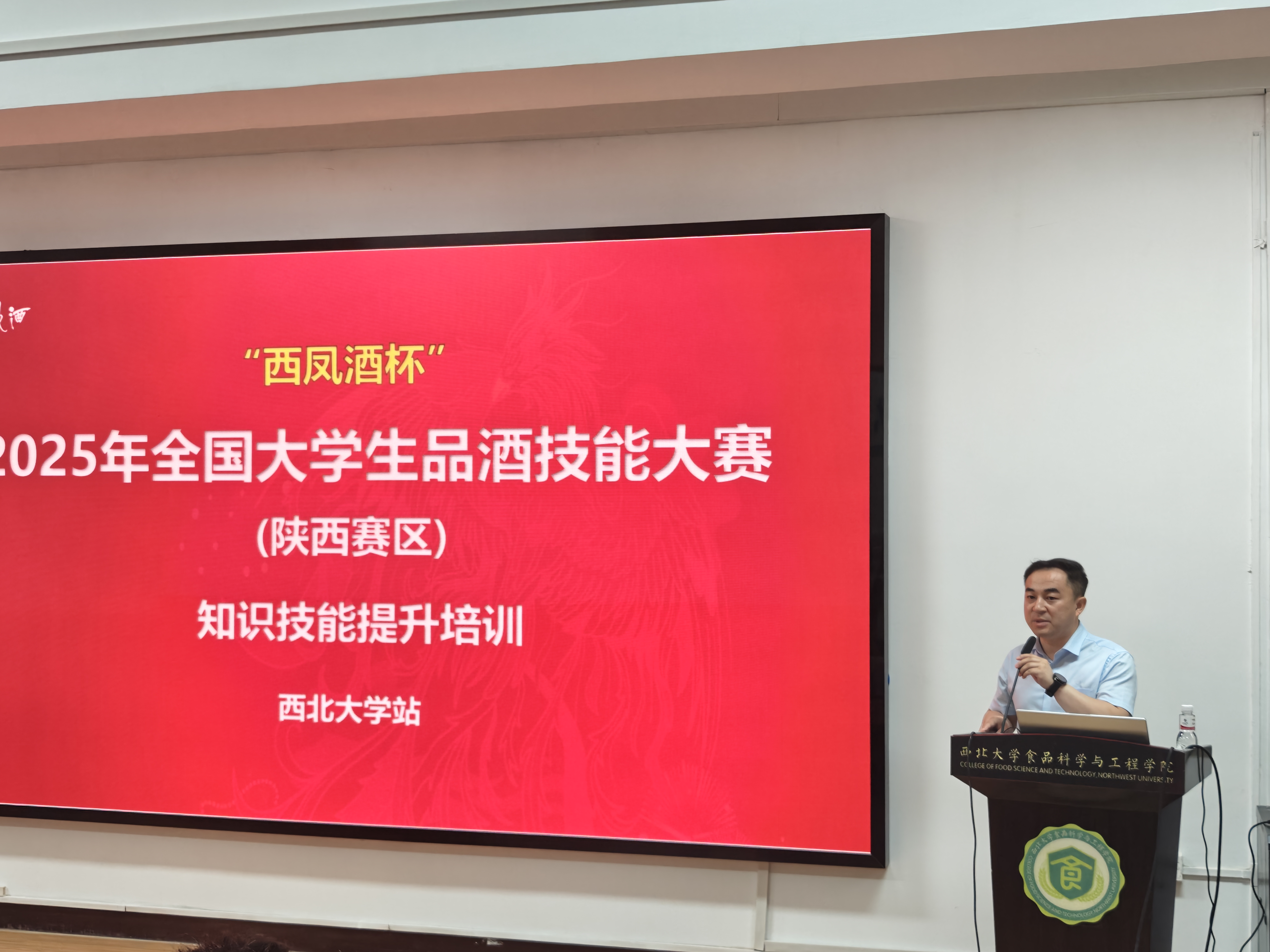 5月30日,“西凤酒杯”2025年全国大学生品酒技能大赛(陕西赛区)知识技能提升培训在西北大学太白校区食品科学与工程学院举行。西凤酒酒体设计中心主任陈君平,副主任林克明、祁耀华,beat365在线体育官网行政副院长马燕及相关师生共百余人参与本次培训,会议由冯克伟副教授主持。