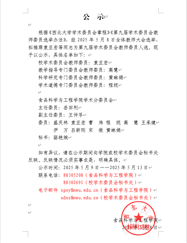 上一条:食品科学与工程学院2025年申请审核学术博士研究生复试结果公示 下一条:食品科学与工程学院2025年博士研究生招生考核工作方案