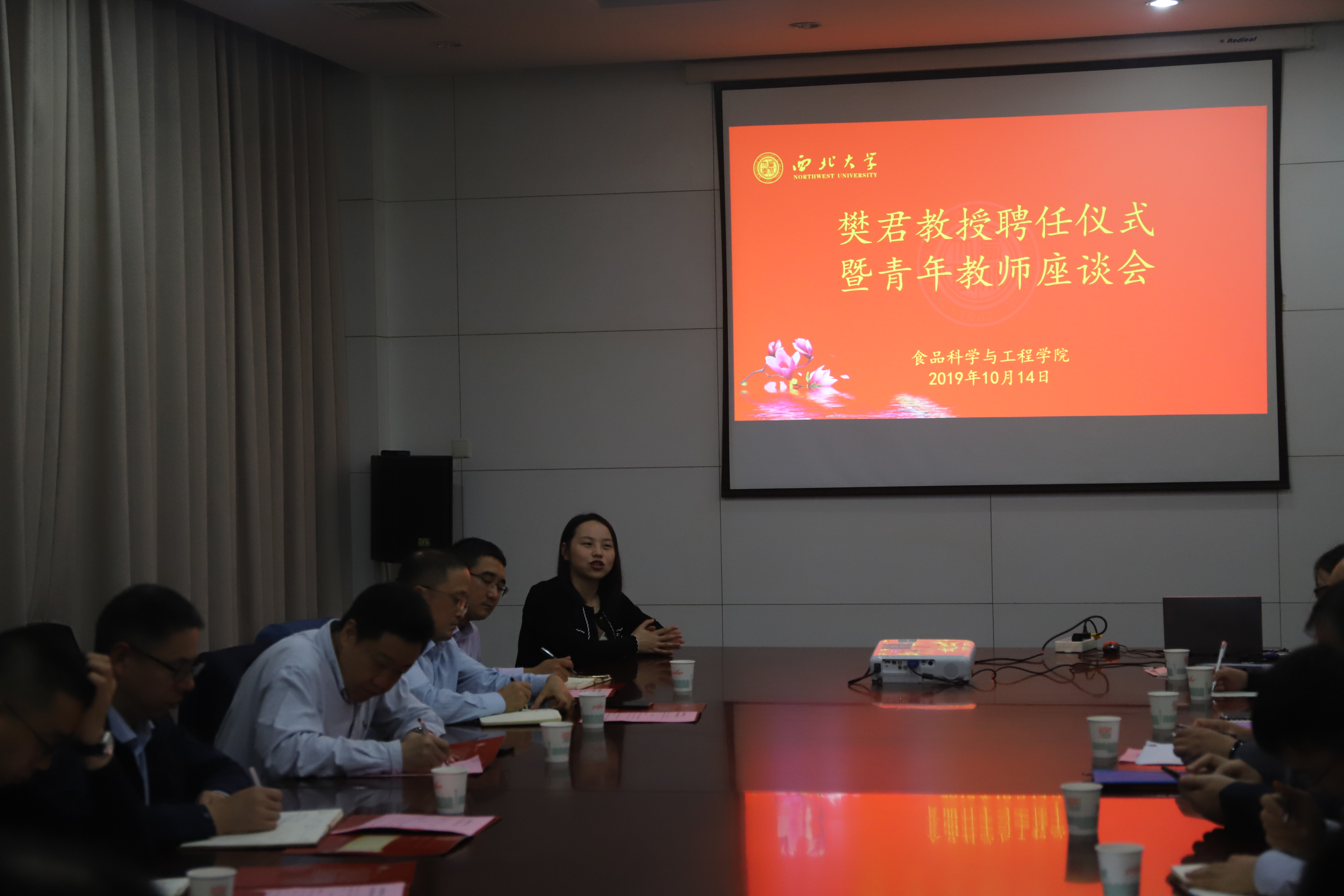 10月14日下午,beat365在线体育官网举行樊君教授聘任仪式暨青年教师座谈会,全院教师参加,会议由副院长赵会武主持。