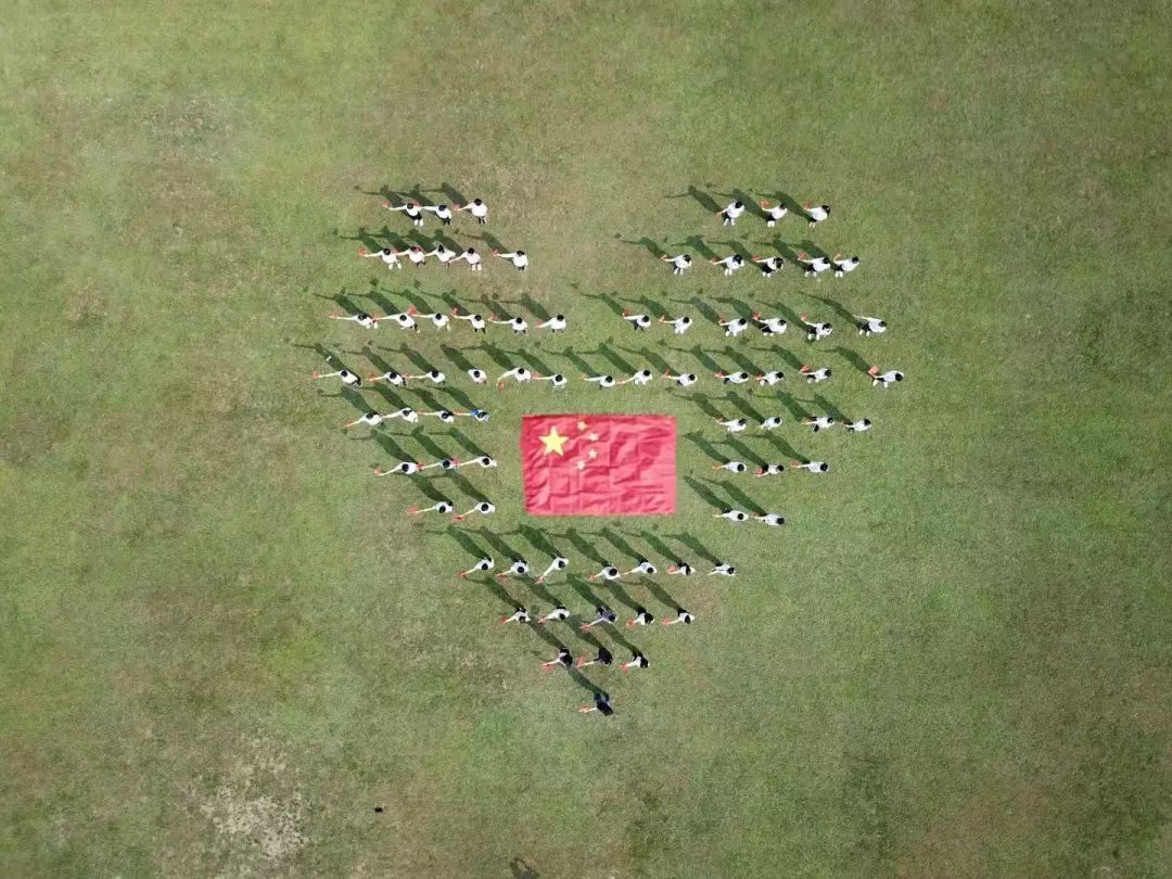 “新时代,看我们长征”食品学子们满怀对祖国的热爱,用航拍各式字符为祖国庆生,一个个摇动的红旗是颗颗爱国的红心,一张张朝气的脸庞是为祖国奉献的决心,看我们艰苦奋斗,望祖国繁荣富强。
