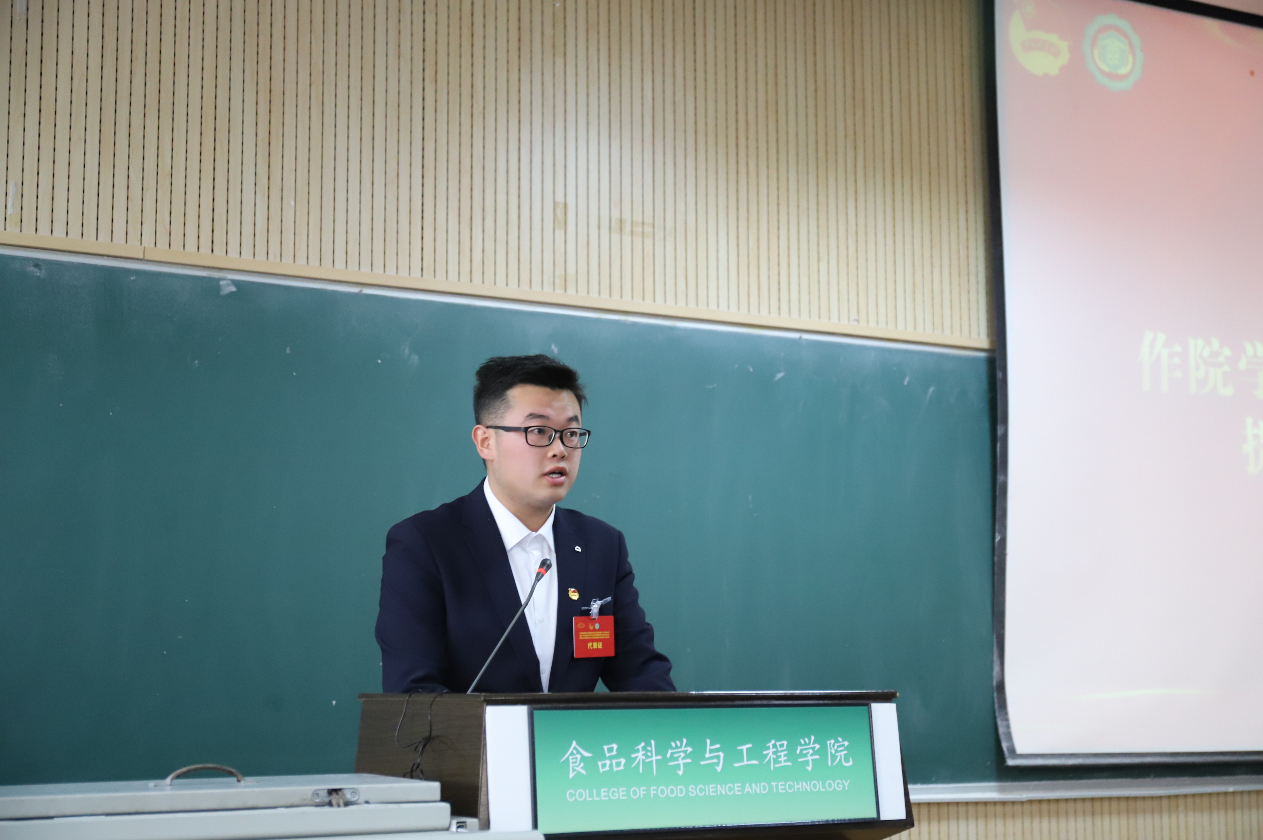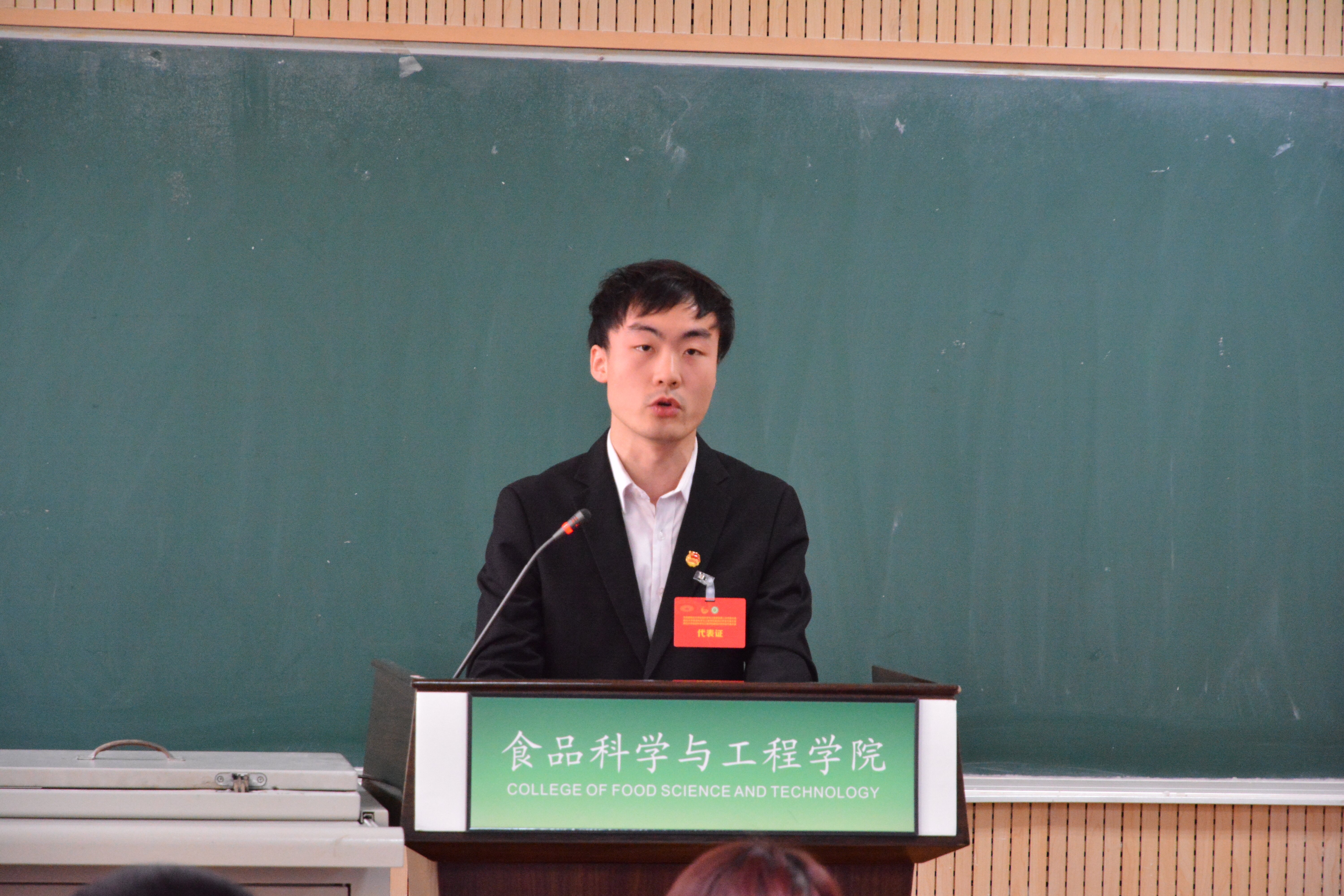 杨宇同学作题为《牢记服务宗旨 根植同学需求 引领服务广大同学成长为“食”代新人》的研究生会工作报告。