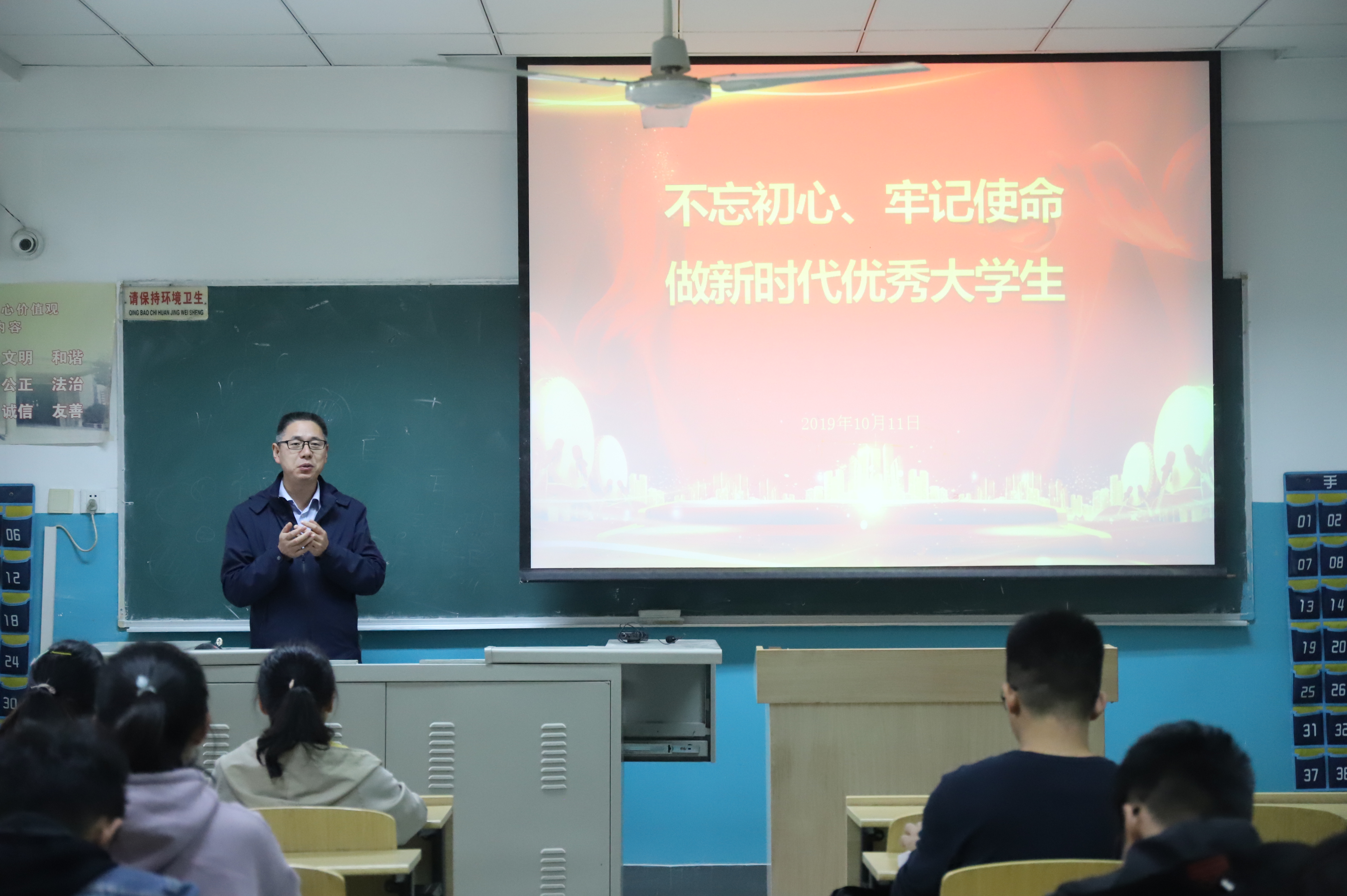 10月11日下午,学院党支部书记刘晓忠以“不忘初心、牢记使命,做新时代优秀大学生“为题,为beat365在线体育官网学生上了一堂生动的党课。