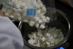 以下是同学们制作雪花酥的过程: