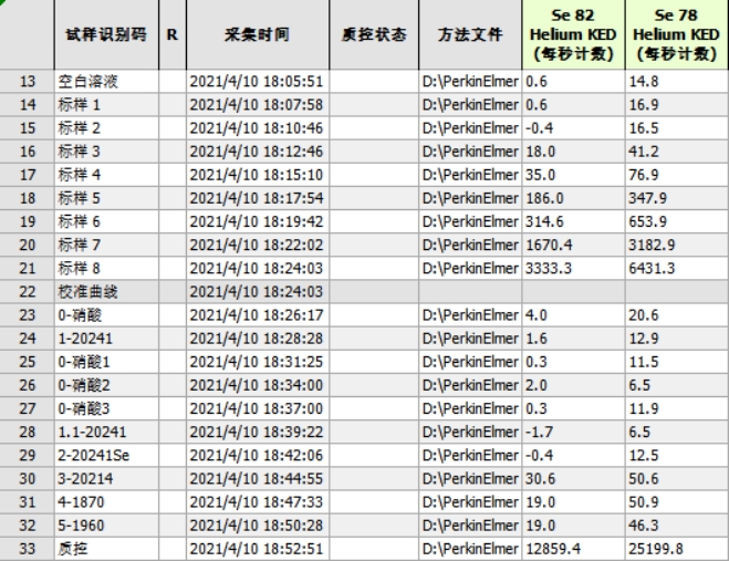 标准模式下灵敏度:低质量数(Li):>55M cps/ppm;