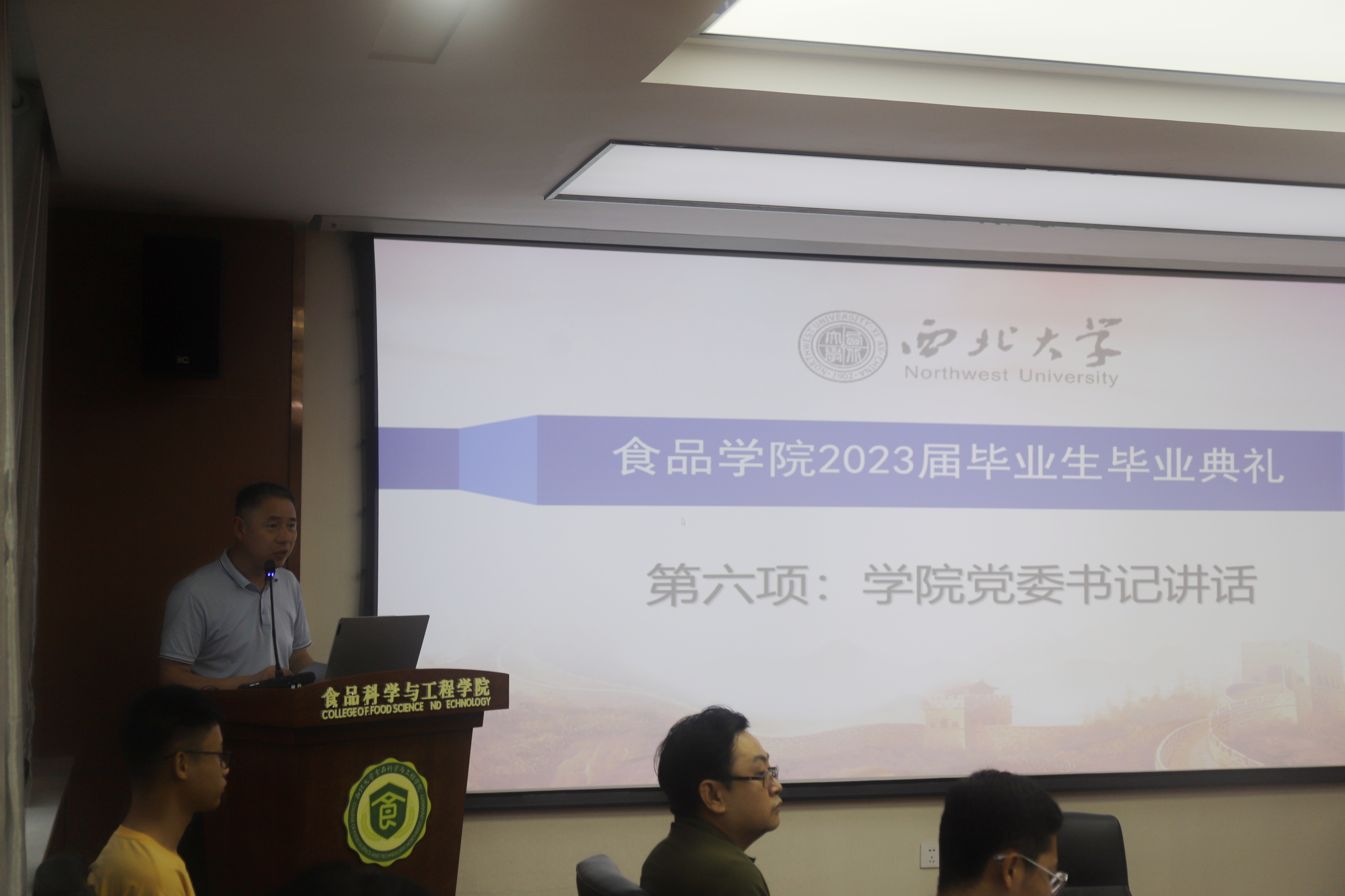 白武双副教授代表全体教师发言。他勉励全体毕业生要志存高远,脚踏实地,不断磨练本领、勤奋努力、追求进步,用自己的实际行动去诠释食品学子的责任与担当。