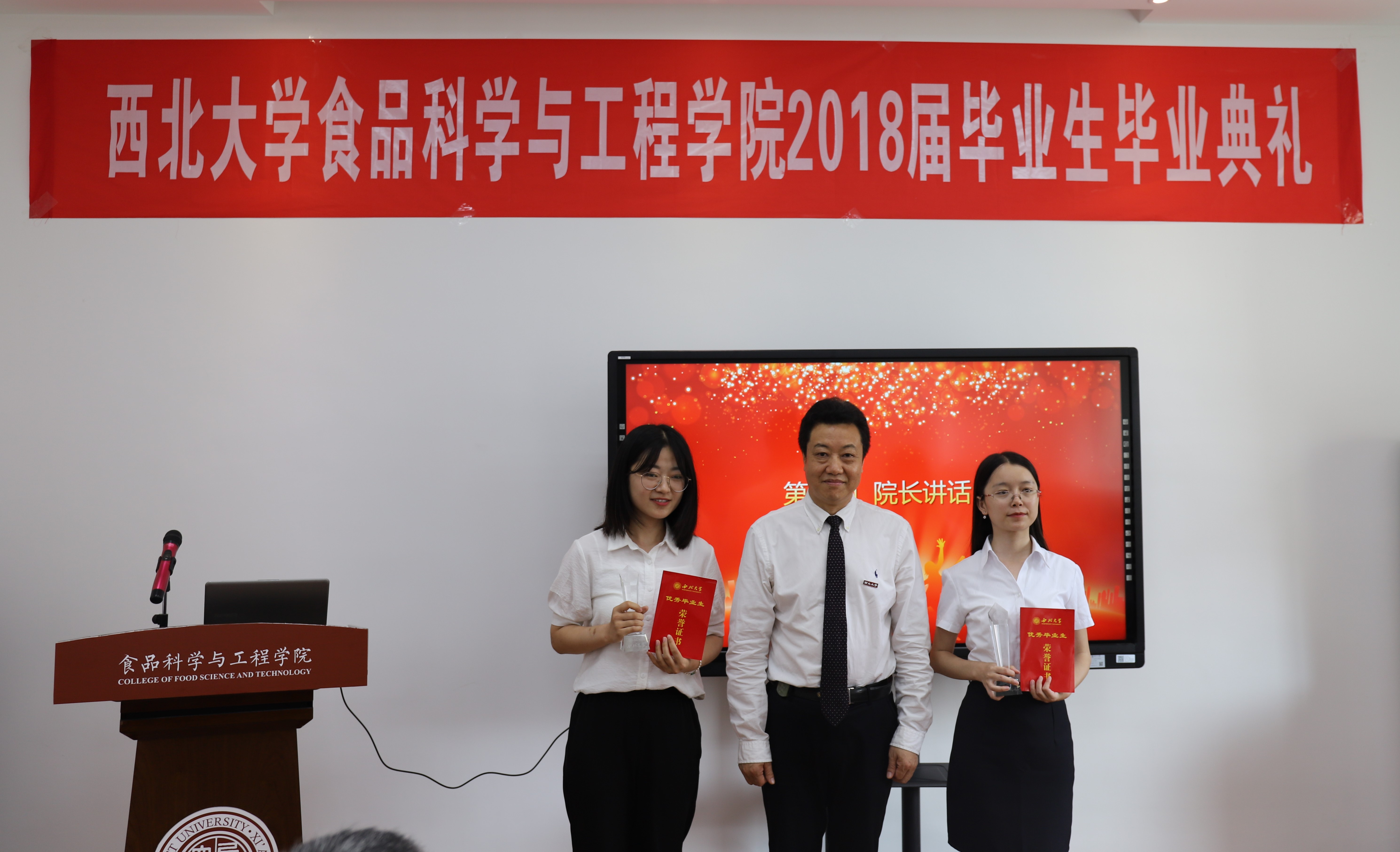 全体师生共同观看了学院精心制作的2018届毕业视频。绿树成荫,错落有致的西大校园,老师们亲切的毕业祝福,四年校园生活的点点滴滴无不感动着即将毕业离校的2018届学生。