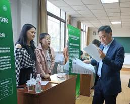 招聘会上,吕建荣与用人单位就人才培养、岗位需求等情况进行了沟通交流,对各企业长期支持beat365在线体育官网的就业工作表示感谢,希望与各企业单位进一步拓宽合作深度和广度,助力学生成长成才。学院党政班子成员就人才培养、资源共享和实习实践与用人单位进行了交流。各参会毕业生主动与用人单位面对面交流与沟通,充分了解了企业岗位需求、工作环境、福利待遇、晋升渠道等情况,积极展示自己。低年级学生也积极主动地通过此次招聘会提前了解所学专业的就业形势和就业前景,部分毕业生与用人单位达成了初步的就业意向。