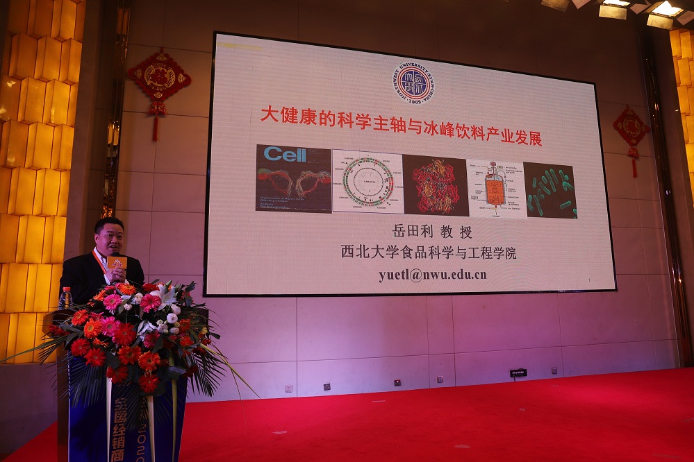 随后,岳田利院长做了题为“大健康的科学主轴与冰峰饮料产业发展”的报告。他详细介绍了人类所面临的食品安全问题,论述了人类面临的四大危机及食品面临的四大安全问题,阐述了建立安全危害全产业链系统、科学有效的数据链支撑等有待解决的重大课题建立的必要性;围绕着人类健康问题,从疾病的发展趋势、饮食健康、青少年健康数据、人口老龄化、亚健康人群等方面论述了人类面临的健康问题;从慢性病的饮食干预、肠道功能、肠道菌群与疾病的关系、健康产业等方面论证了大健康问题的科学主轴问题;进而介绍了保证食品安全的三个体系、三道防线和三种方法;结合现代科技发展趋势,对如何培育营养健康食品产业集群新引擎进行了深入的思考和阐述。特别是在此背景下的全球饮料产业的现状和特点,欧美、日韩地区和中国差异所在,并科学分析了全球饮料的发展趋势,即围绕着个人健康、营养为核心的理念,并在此基础上为冰峰饮料的产品开发和设计给予了科学的建议。报告深入浅出,通俗易懂,获得了与会者们的一阵阵热烈掌声。